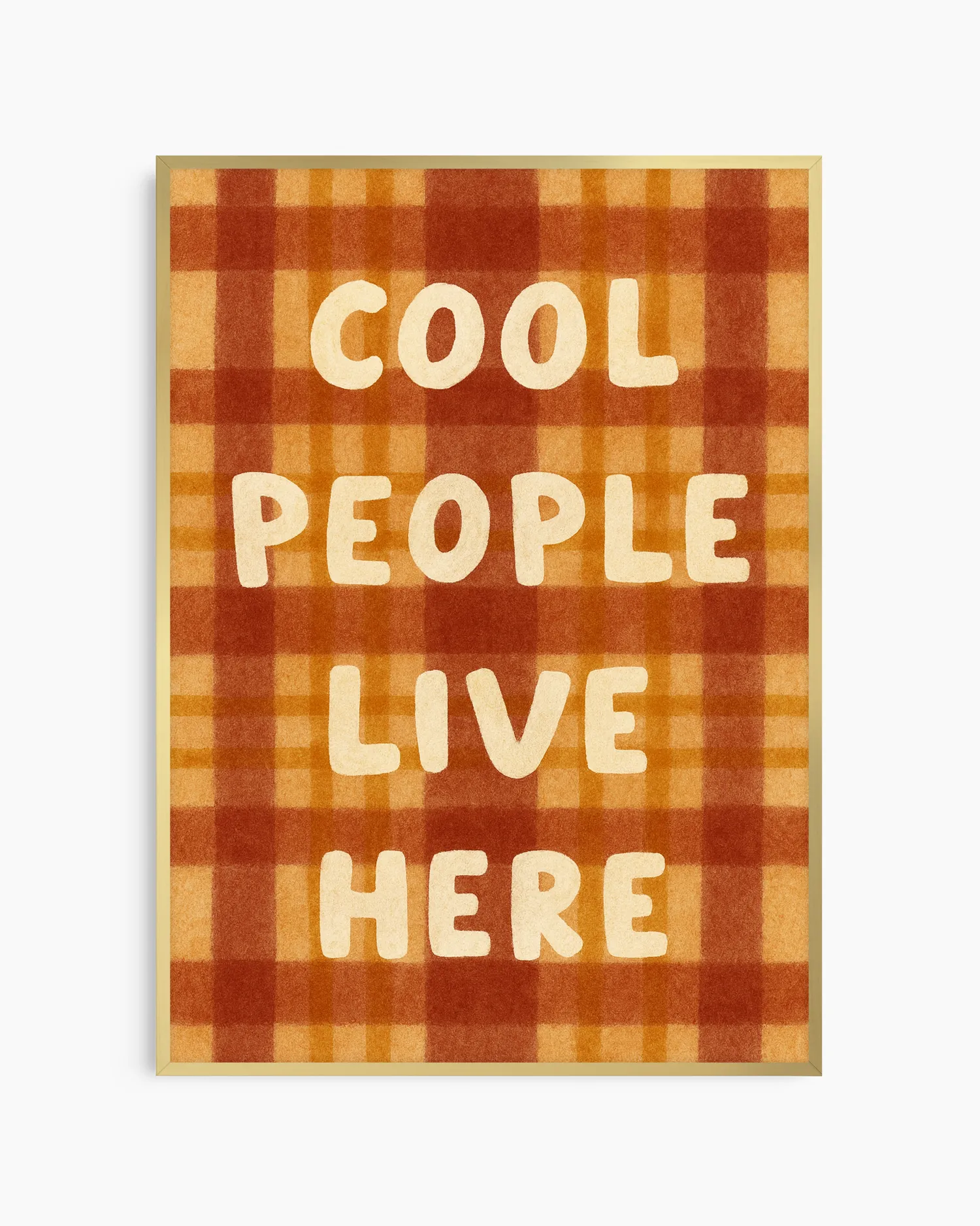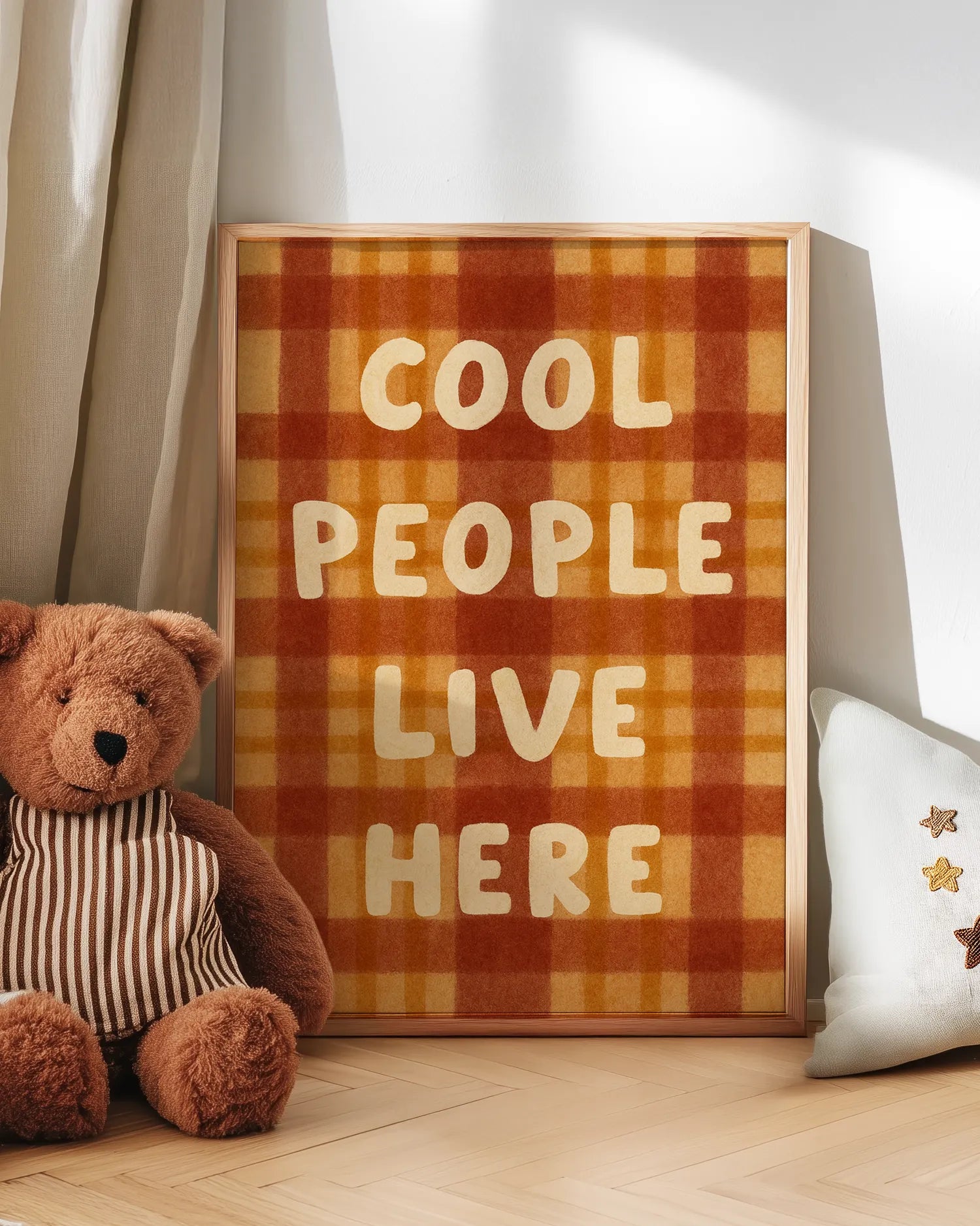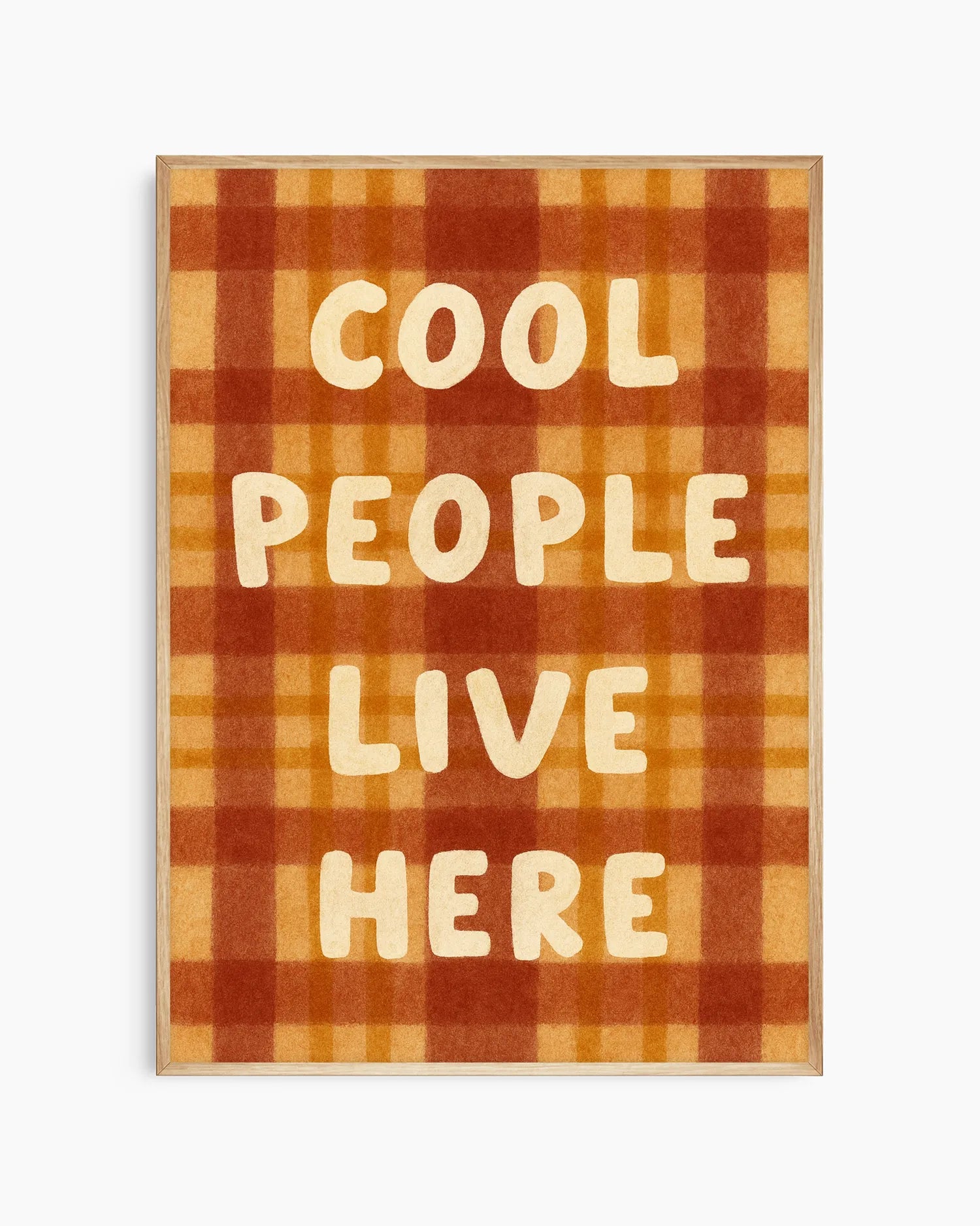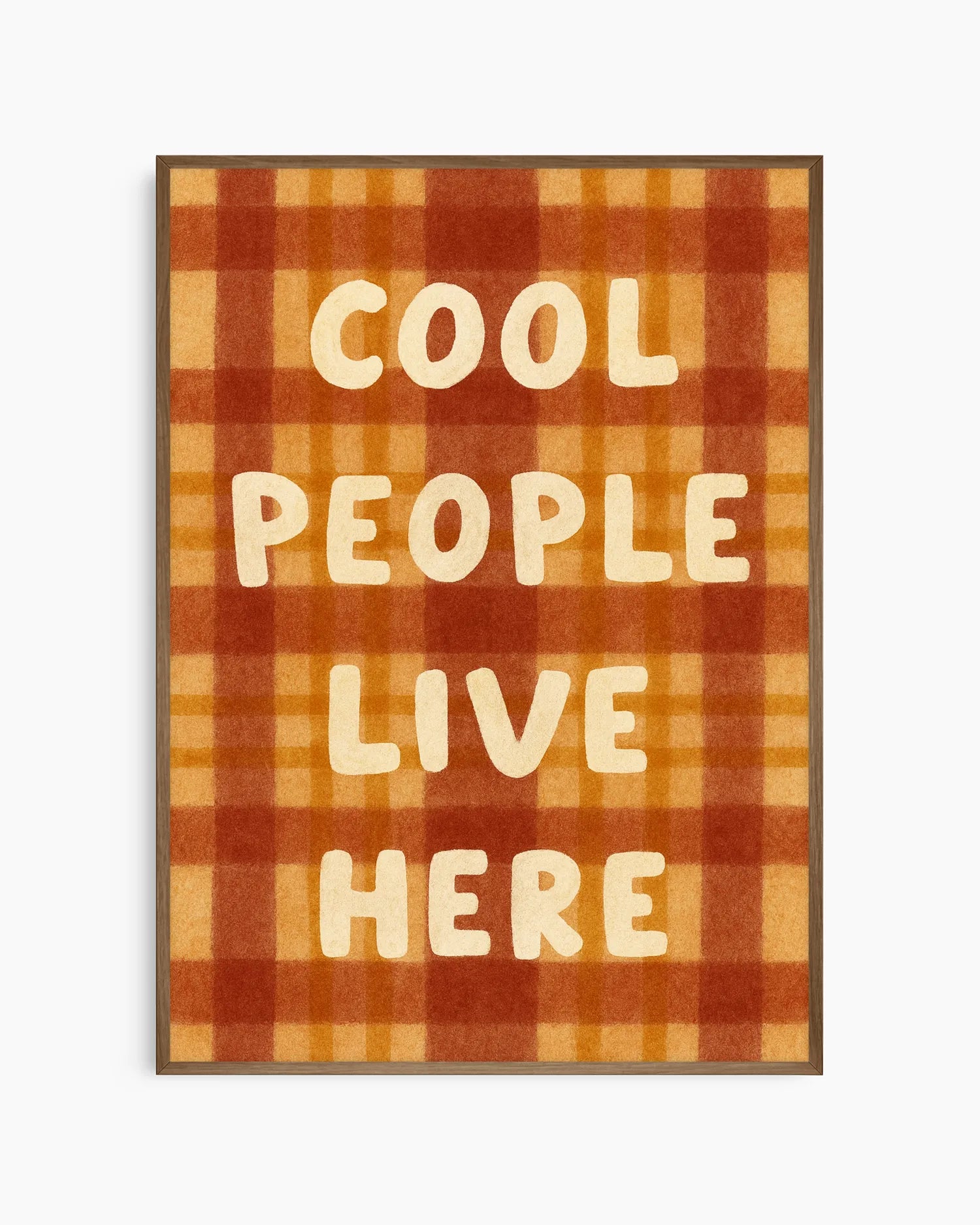 Et varmt, retroinspireret ternet plakatdesign med en legende besked, der straks giver personlighed til ethvert rum.