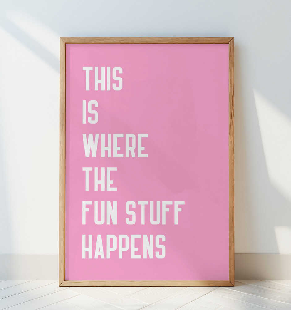 Tilføj et legende strejf af pink til din indretning med denne opløftende vægkunst, der har fed hvid typografi på en lys pastelfarvet baggrund. Det minimalistiske design og den afbalancerede farvepalet skaber en rolig atmosfære uden at dominere rummet. Designet til at føles både tidløst og legende passer det perfekt over tremmesengen, læsehjørnet eller skrivebordet. Et opløftende valg til børneværelset, legerummet eller den moderne familiebolig – og passer smukt sammen med skandinavisk indretning og gallerivægge. Trykt på mat museumskvalitetspapir, der bevarer alle fine detaljer og farver i mange år.