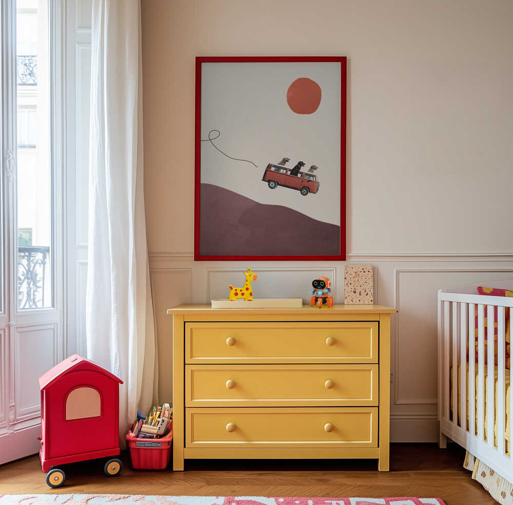 Tilføj et legende strejf af varme til din indretning med denne charmerende vægkunst i bløde beige og jordnære terrakottatoner. Den minimalistiske komposition og afbalancerede farvepalet skaber en rolig og indbydende atmosfære uden at overvælde rummet. Designet til at føles både tidløst og legende, passer den perfekt over en tremmeseng, et læsehjørne eller et skrivebord. Et smukt valg til børneværelser, legeområder og moderne familiehjem – ideel sammen med skandinavisk inspireret indretning og billedvægge. Trykt på museumskvalitetspapir med mat finish, der bevarer hver eneste detalje og nuance i mange år.